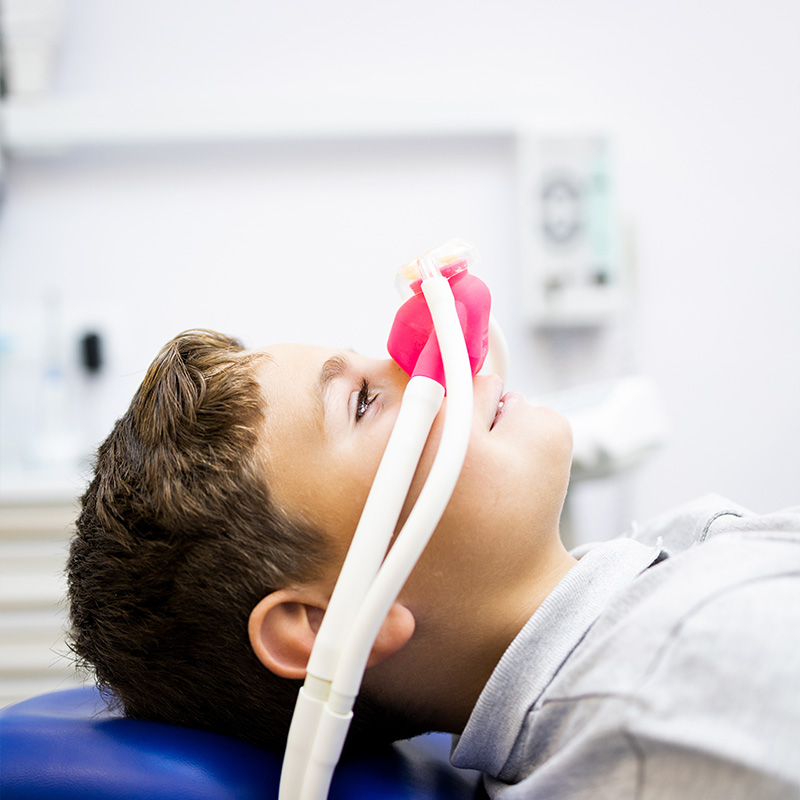 Die Sedierung mit Lachgas unterstützt dein Kind dabei, sich während der Behandlung ruhig und entspannt zu fühlen. Dein Kind bleibt wach und ansprechbar, empfindet die Situation jedoch deutlich gelassener.